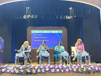 The festival featured a dynamic lineup of sessions showcasing India’s advancing AI capabilities and inspiring young innovators. The day opened with the launch of the AI Impact Stories Compendium, followed by the AI Horizon Summit led by Sustainable Living Labs. Key sessions included a panel on sector-specific AI skilling, a discussion on AI Evolution to Agentic AI, a panel celebrating Women Leaders in AI, and focused conversations on Frugal AI and cost-effective AI with Intel CPUs and Kompact AI. The programme also featured a Masterclass on AI for Accessibility and a Fireside Conversation on AI in the K–12 ecosystem. The festival concluded with the felicitation of the AI Impact Festival 2025 winners for their socially impactful AI innovations and the graduation ceremony of the first Data Annotation Course cohort, recognising 60 girl students from underserved communities.