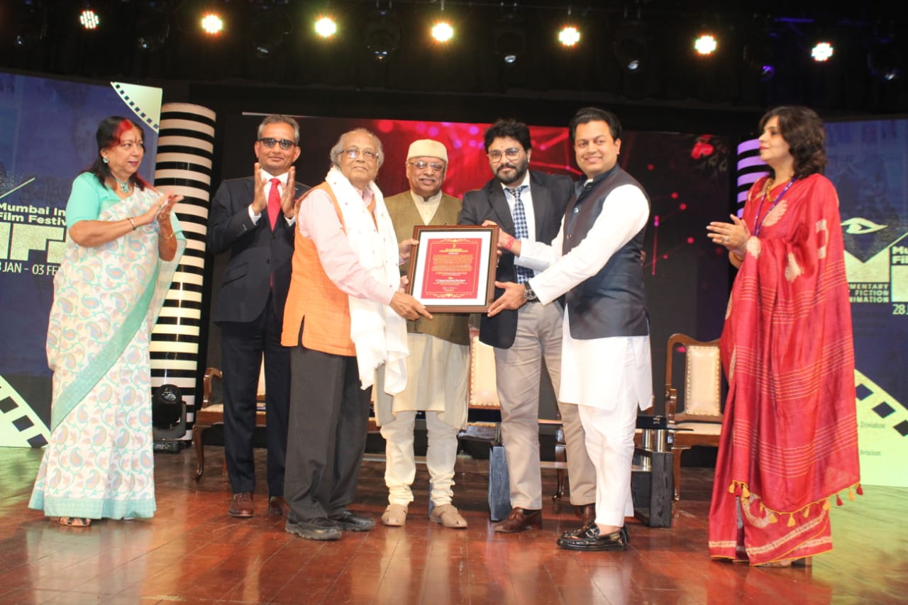 16 व्या मुंबई आंतरराष्ट्रीय चित्रपट महोत्सवाच्या उद्घाटन सोहळ्यात व्ही शांताराम जीवनगौरव पुरस्कार डॉ एस कृष्णस्वामी यांना प्रदान