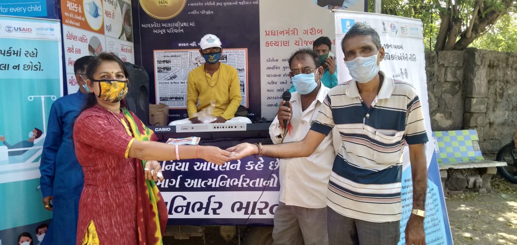 આજે રથે છોટાઉદેપુર જિલ્લામાં નસવાડી તાલુકાના હરીપુરા ગામથી રથે પ્રસ્થાન કર્યું હતું. હરીપુરા ગામના સરપંચ શ્રીએ રથને લીલી ઝંડી બતાવી પ્રસ્થાન કરાવ્યું હતું. સમગ્ર દિવસ દરમિયાન રથે ગામની આસપાસના વિસ્તારોમાં ભ્રમણ કરીને કોરોના અંગે, પોષણના મહત્વ વિશે તેમજ પાંચ વર્ષ સુધીના બાળકોમાં રસીકરણના મહત્વ વિશે જાગૃતિ સંદેશ પહોંચાડ્યો હતો તેમજ સ્થાનિકોમાં આયુર્વેદિક અને હોમિયોપેથીક દવાઓની કીટનું નિઃશુલ્ક વિતરણ કર્યું હતું. આ ઉપરાંત રથ પર સવાર કલાકારોએ સમગ્ર દિવસ દરમિયાન સ્થાનિકોને કોરોના જાગૃતિના શપથ લેવડાવ્યા હતા.