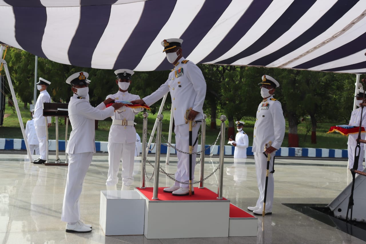 પાસિંગ આઉટ પરેડ દરમિયાન, મુખ્ય અતિથિએ શૈક્ષણિક, રમતગમત અને ઇતરપ્રવૃત્તિઓમાં પારંગતતા મેળવનારા હોંશિયાર ઓફિસરોને પુસ્તક પુરસ્કારો અને પ્રમાણપત્રો એનાયત કર્યા હતા. સબ લેફ્ટેનન્ટ રોહિત યાદવ મેરિટ ક્રમમાં પ્રથમ સ્થાને રહ્યા હતા જ્યારે સબ લેફ્ટેનન્ટ અંકુશ સાહુએ મેરિટ ક્રમમાં દ્વિતિય સ્થાન મેળવ્યું હતું અને તેમને “શ્રેષ્ઠ ઓલ-રાઉન્ડ-ઓફિસર” તરીકે પણ સન્માનિત કરવામાં આવ્યા હતા. કોમોડોરે પરેડને સંબોધન પણ કર્યું હતું જેમાં તેમણે અભ્યાસક્રમ પૂરો કરનારા ઓફિસરોને તેમજ વિજેતાઓને અભિનંદન પાઠવ્યા હતા અને હંમેશા ઉચ્ચ વ્યાવસાયિક ધોરણો માટે આગળ વધવાની ઝંખના રાખવાનો અનુરોધ કર્યો હતો.