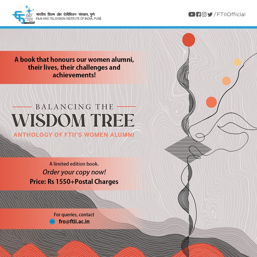 As a premier film education institute, established in the early 60’s, FTII has the impeccable record of producing some of the most varied and diverse storytellers in the country. This includes women alumni who have broken into new territories and contributed as pioneers in filmmaking, as innovators and creators. The diverse careers of these women alumni also corresponds with evolution of the film and television industry itself. To acknowledge and celebrate the inspirations, challenges and achievements of the women alumni trained at FTII in specialisations like direction, scriptwriting, cinematography, sound recording, production design, acting and production, FTII in association with Publications Division, Ministry of Information and Broadcasting, Government of India has created this compilation titled "Balancing the Wisdom Tree - An Anthology of FTII's Women Alumni".