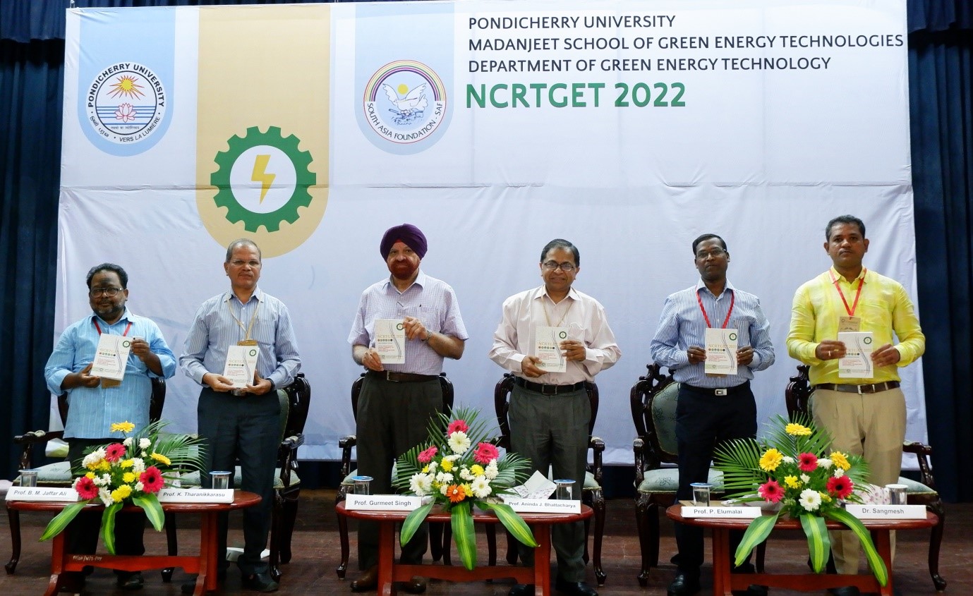 பசுமை ஆற்றல் தொழில் நுட்பத்துறை தொடங்கிபத்து ஆண்டுகள் நிறைவடைந்ததை கொண்டாடும் விதமாக NCRTGET 2022 இரண்டு நாள் தேசிய மாநாடு ஏற்பாடு செய்யப்பட்டது. புதுவை பல்கலைக்கழகத்தின் மாநாட்டு மற்றும் கலாச்சார மையத்தில் இந்த மாநாடு நடைபெற்றது. மாநாட்டின் ஒருங்கிணைப்பாளர் பேராசிரியர் பெ.ஏழுமலை மாநாட்டின் குறிக்கோள் பற்றிபேசுகையில், இந்தியா முழுவதிலும் உள்ள அறிஞர்கள், ஆராய்ச்சியாளர்கள், கல்வித்துறை வல்லுநர்கள் மற்றும் தொழில் வல்லுநர்கள் இடையே தங்கள் கருத்துக்கள் மற்றும் ஆராய்ச்சிகண்டு பிடிப்புகளை பரஸ்பரம் பரிமாறிக் கொள்ள ஒரு வாய்ப்பை ஏற்ப்படுத்துவதே என்றார். சூரியஒளிஆற்றல், மின்கலன், சூரியவெப்பஆற்றல், உயிர்ஆற்றல், பசுமைக்கட்டிடம், காற்றாலை ஆற்றல் மற்றும் ஆற்றல் உற்பத்திக்கான திறமையான முறைகளை உள்ளடக்கிய சுமார் 95 ஆய்வுக் கட்டுரைகள் விவாதிக்கப்பட்டன மற்றும் பதினேழு வல்லுநர்களின் சிறப்புவிரிவுரைகள் வழங்கப்பட்டன. மின்வாகனங்களில் தற்போதைய தொழில் நுட்ப முன்னேற்றத்திற்கு ஏற்ப, லித்தியம்-அயன் மின்கலன்கள், சூப்பர் கேபாசிட்டர்கள் மற்றும் மின் வாகனங்கள் பற்றி பேச தொழிற்த்துறை வல்லுநர்கள் அழைக்கப்பட்டனர். மாநாட்டில் தலைமையேற்று பேசிய துணைவேந்தர் பேராசிரியர் குர்மீத் சிங், மின்உற்பத்தியின் தேவைகள் குறித்தும், மின் ஆற்றல் சேமிப்பின் முக்கியத்துவம் குறித்தும் விளக்கினார். மின்வாகன பயன்பாட்டினால் எவ்வாறு நாட்டின் ஆற்றல் தேவைகளை அதிகரித்திரிக்கிறது என்பதையும், ஆற்றலை நாம் எரிசக்தி சாரா ஆதாரங்களில் இருந்து எடுக்க வேண்டியதேவைகளை வலியுறுத்தினார். பெங்களுரு இந்திய அறிவியல் நிறுவனத்தின் பேராசிரியர் மற்றும் சிறப்பு விருந்தினர் பேரா. அனிந்தாஜிபன்பட்டாச்சார்யா ஆற்றல் நுகர்வு, உற்பத்திமற்றும் சேமிப்பு ஆகியவை ஆற்றலின் மூன்று கரங்கள் என்று குறிப்பிட்டார். சமூகத்தின் பல்வேறு ஆற்றல் தேவைகளைப் பூர்த்தி செய்யலித்தியம்-அயன் அடிப்படையிலான மின்கலன்களுக்கு அப்பால் வேறுசில மின்கலன்களில் ஆராய்ச்சிகளை செய்யுமாறு விஞ்ஞானிகளை அவர் அறிவுறுத்தினார்.