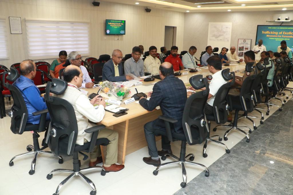 The meeting was chaired by Shri. H.V. Girisha Additional Director, Wildlife Crime Control Bureau, New Delhi officials of Bureau Head Quarters, Wildlife Crime Control Bureau, Forest department of Tamil Nadu, Airports Authority of India, Customs, Animal Quarantine and Certification services, State Police, Central Industrial Security Force, Enforcement Directorate, Directorate of Revenue Intelligence, Zoological Survey of India, and Bureau of Immigration attended the meeting.