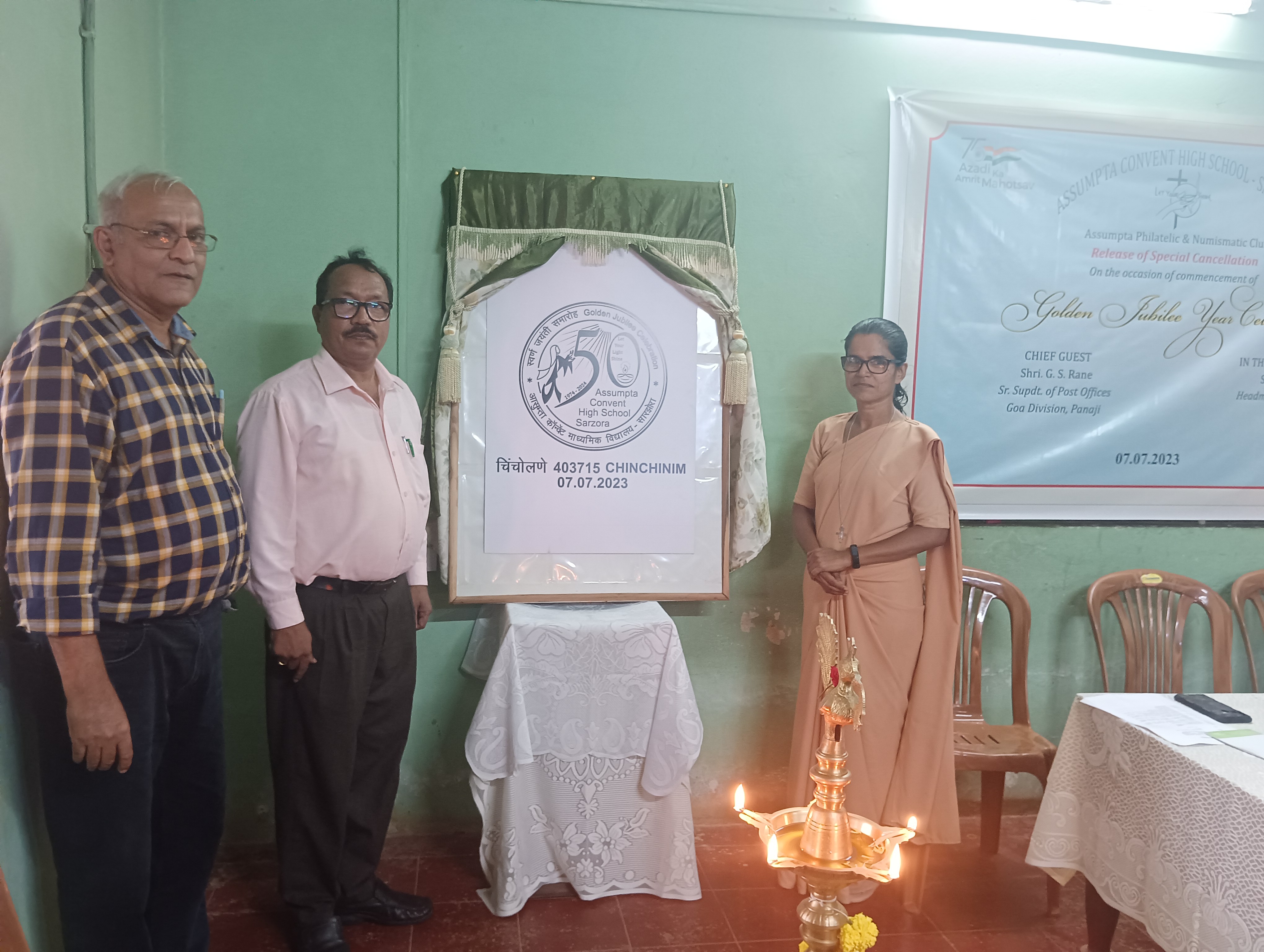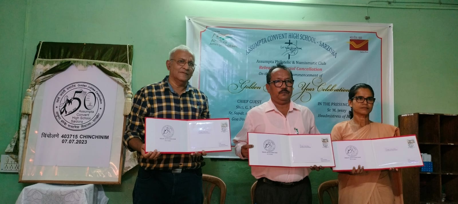 गोवा टपाल विभागाने सारझोरा-चिंचोलणे येथील आसुम्ता कॉन्व्हेंट हायस्कूलच्या सुवर्ण महोत्सवी सोहळ्याचे औचित्य साधून विशेष टपाल तिकीट प्रकाशित केले. गोवा टपाल विभागाचे वरिष्ठ टपाल अधीक्षक जी. एस. राणे यांनी आसुम्ता कॉन्व्हेंट हायस्कूलचे मुख्याध्यापक एम. जेसी, माजी शिक्षक रोलांडो डी मेलो आणि गोवा फिलाटेलिक अँड न्यूमिस्मॅटिक सोसायटीचे सचिव यांच्या उपस्थितीत विशेष टपाल तिकिटाचे प्रकाशन केले.