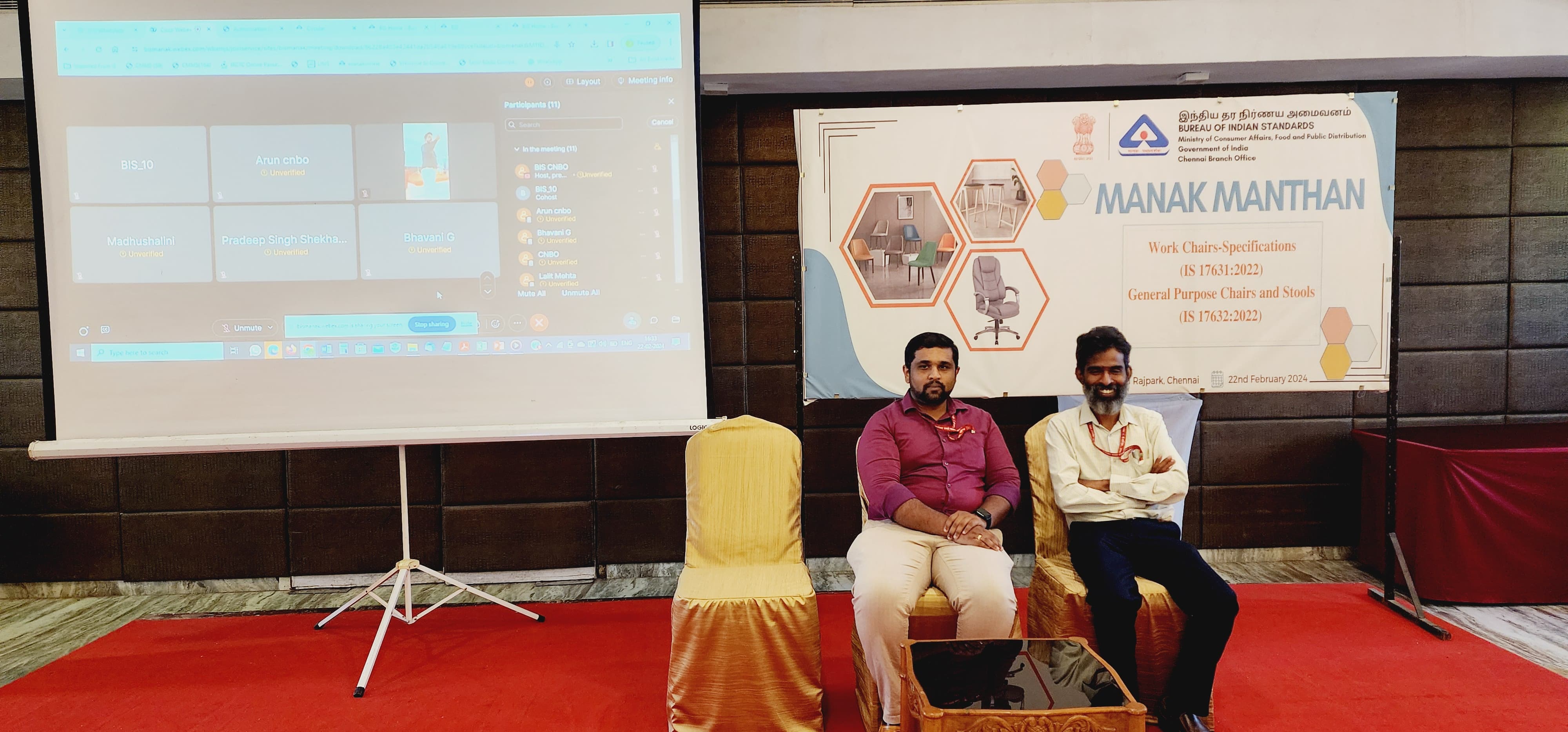 Bureau of Indian Standards (BIS), Chennai Branch Office organized BIS - Manak Manthan Programme on "Work Chairs-Specifications - IS 17631:2022 & General Purpose Chairs and Stools - IS 17632:2022” at Hotel Rajpark, Chennai Today,22 Feb 2024.