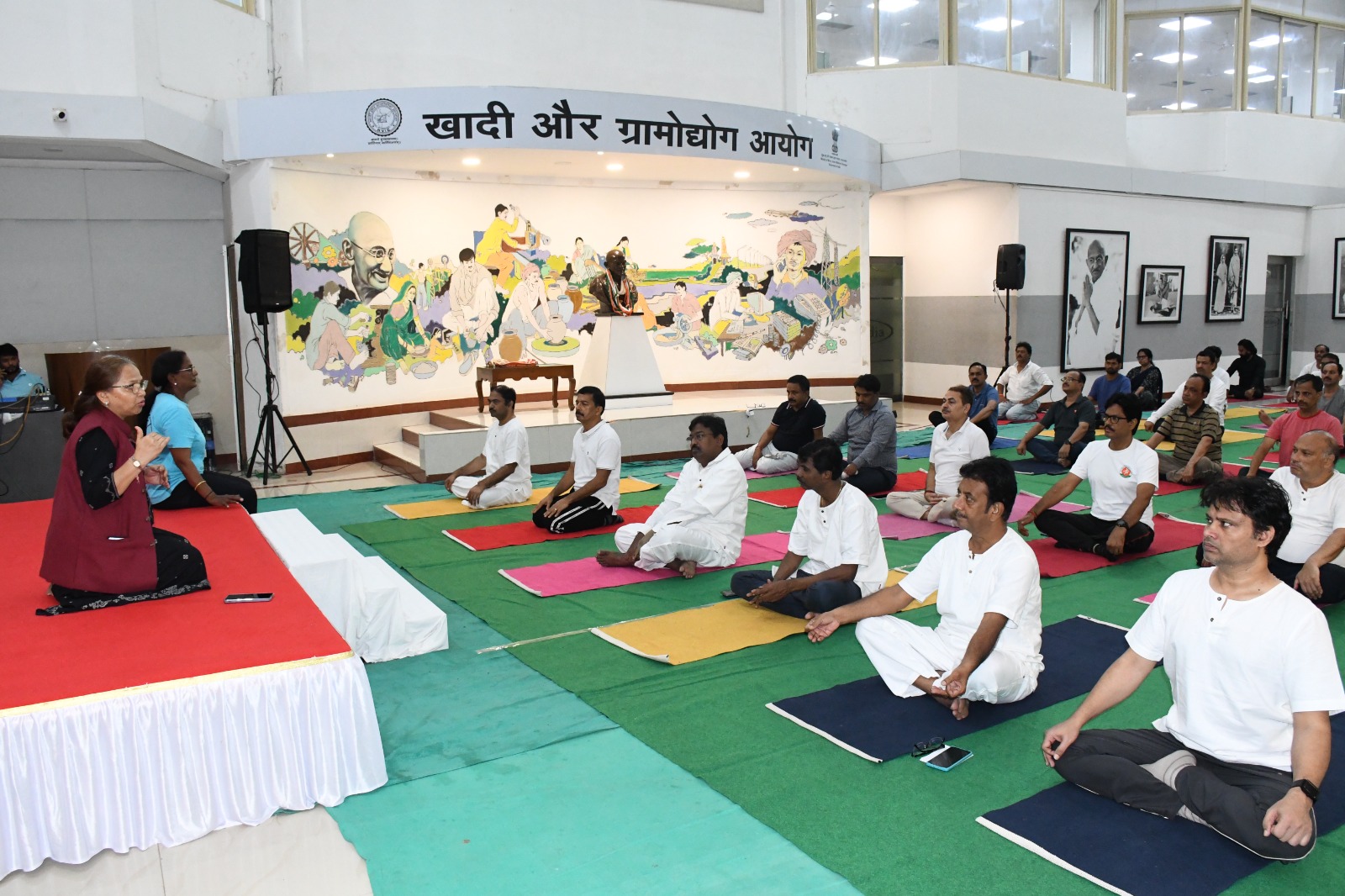 The Khadi and Village Industries Commission (KVIC) had organized a yoga session under the guidance of Yogacharya Prabha Shettya and Gayatri at their Vile Parle based head office.