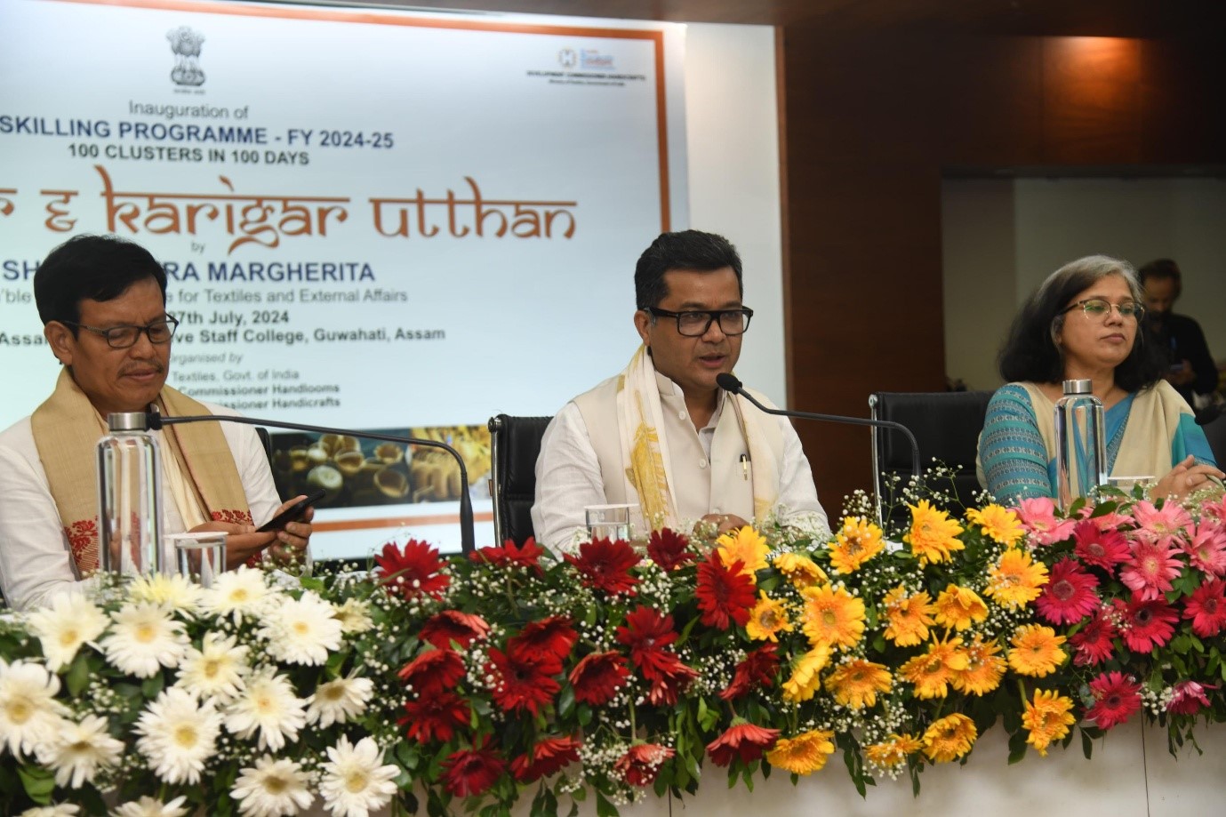 In a significant step towards creating a trained workforce in the Handicrafts and Handloom sector and generate employment opportunities, Minister of State for Textiles and External Affairs, Shri Pabitra Margherita, inaugurated the Bunkar and Karigar Utthan Upskilling Programme FY 2024-25 - 100 Clusters in 100 Days today in Guwahati. The event, organised by the Office of Development Commissioner for Handloom and Development Commissioner for Handicraft, Ministry of Textiles, was inaugurated virtually across the country.