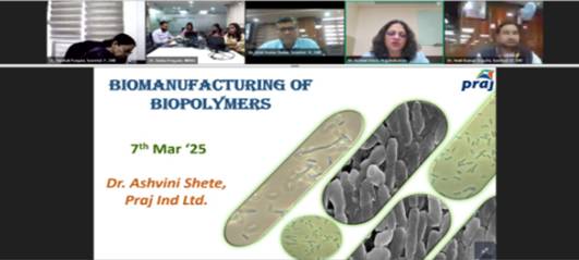 The Department of Biotechnology, Government of India hosted the ninth Webinar in its Biofoundry and Bio manufacturing Initiative series on March 7, 2025. The session centered on "Bio manufacturing of Biopolymers," a crucial area under the BioE3 Policy, which was approved by the Union Cabinet in August 2024. The BioE3 Policy is designed to establish India as a global leader in bio-based innovations, emphasizing sustainable biomanufacturing across various thematic areas, including biopolymers. This Webinar served as a platform for academia, industry leaders, startups, and researchers to engage in discussions about advancements and opportunities in biopolymer biomanufacturing.