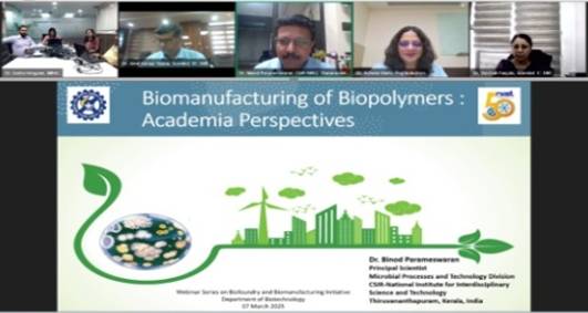Department of Biotechnology Hosts the Ninth Webinar in its Webinar Series on Biomanufacturing and Biofoundry Initiative on the Theme “Biomanufacturing of Biopolymers