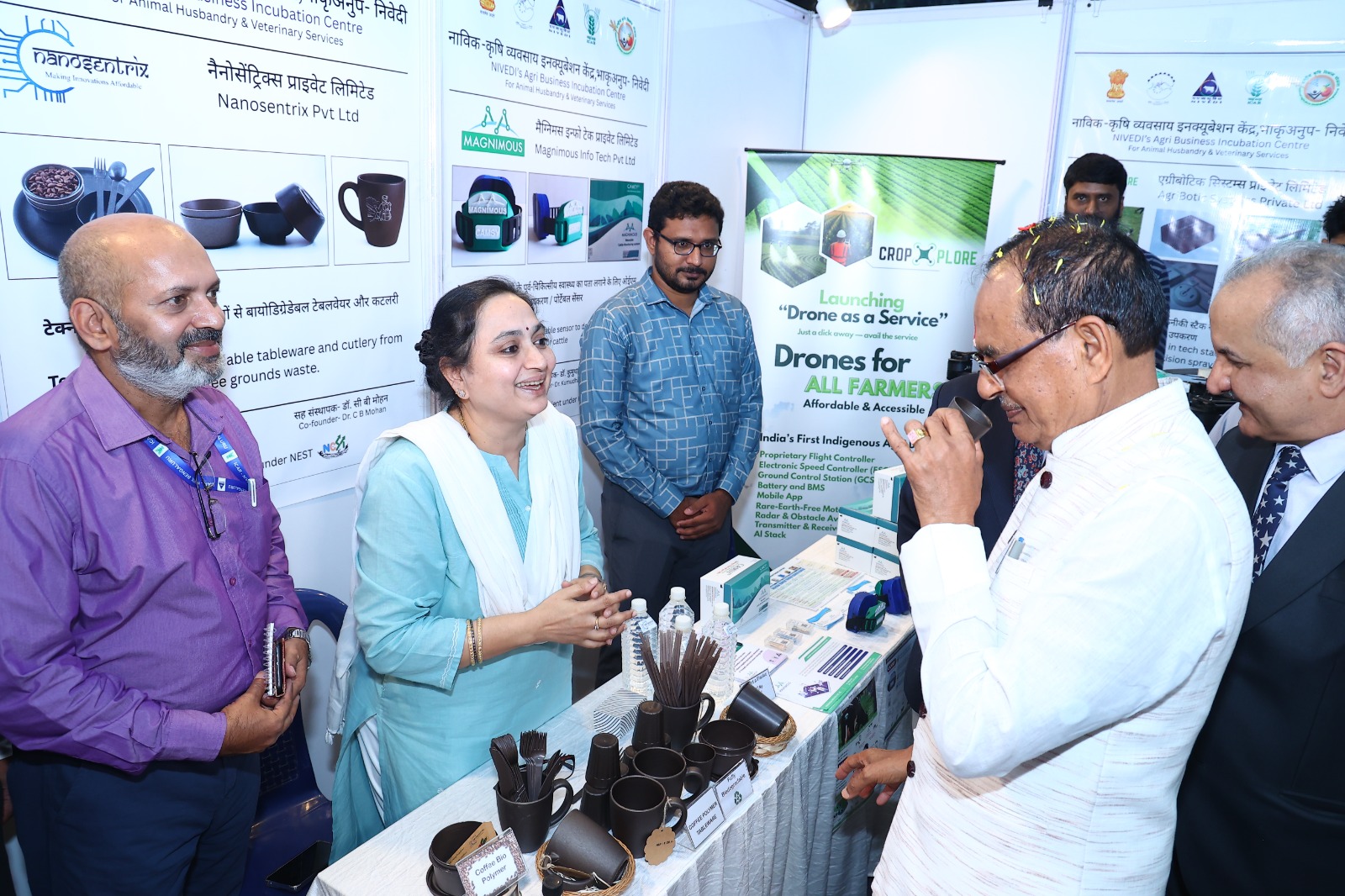 On the occasion several NaaViC, Agri-Business Incubator Incubated Start-ups namely Agrihawk Technologies Pvt Ltd, Magnimous Info Tech Pvt. Ltd, Kempmann Bioorganics LLP, Barve Technologies LLP, Atsuya Technologies Pvt Ltd, Nanosentrix Pvt Ltd, Weather cast solutions Pvt Ltd, AgriBotic Systems Private Ltd and Neer Shakti Systems Pvt Ltd were present on the day and demonstrated their technologies to the Minister. NaaViC had supported more than 75 startups with a Grant-in-aid support of over 7 crores under the RKVY-RAFTAAR scheme from the MoAFW. NIVEDI’s industry partners such as BioVet Pvt Ltd, and KMF showcased their range of products. ICAR-IIHR also put up the stall to showcase their technologies and products developed for horticulture.
