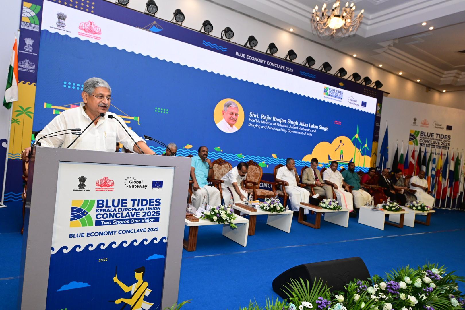 India’s fisheries sector is undergoing rapid growth, with Kerala emerging as a model state in advancing the nation’s blue economy, said Shri Rajiv Ranjan Singh, Union Minister for Fisheries, Animal Husbandry and Dairying and Panchayati Raj. He was speaking at the inauguration of the Blue Tides Kerala–European Union Conclave, organized by the Kerala Government to promote sustainability and innovation in the fisheries sector.