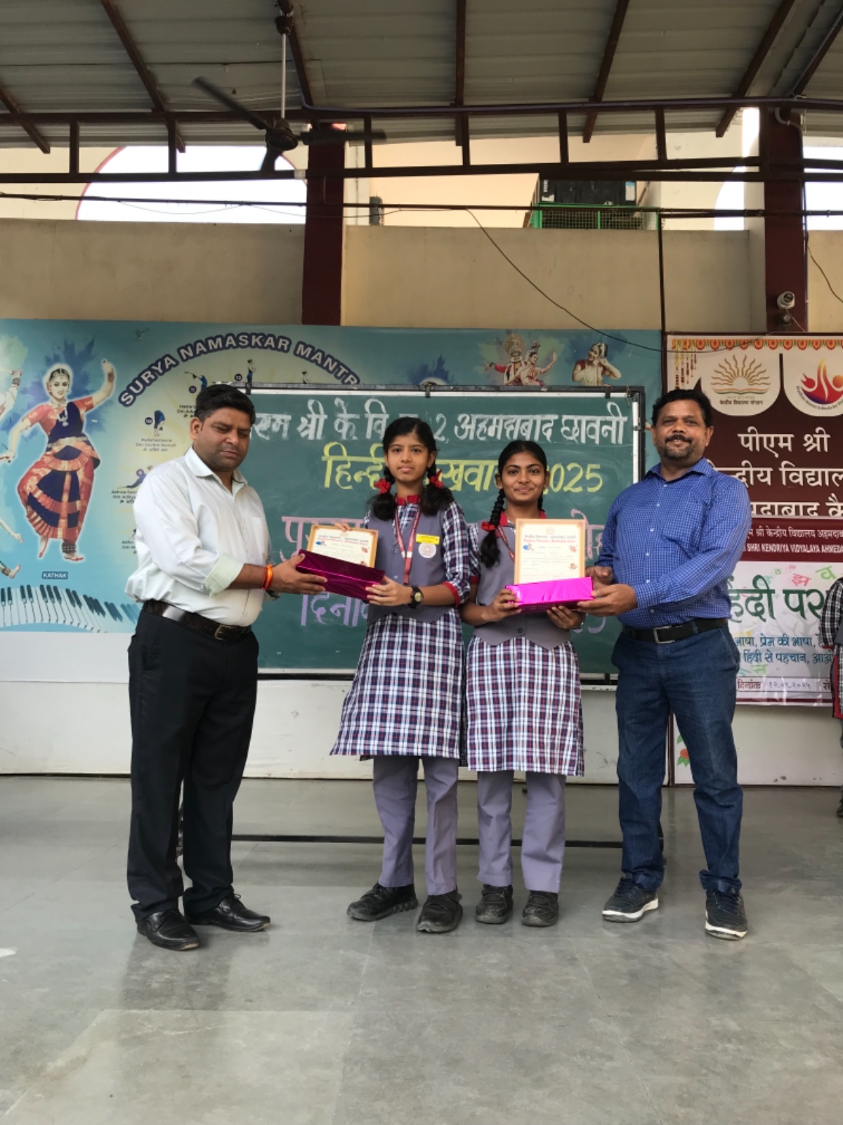 પી.એમ. શ્રી કેન્દ્રીય વિદ્યાલય ક્રમાંક 2 અમદાવાદ છાવણીમાં શુક્રવારે હિન્દી પખવાડા પારિતોષિક વિતરણ સમારોહનું આયોજન કરવામાં આવ્યું હતું. આ સમારોહમાં હિન્દી પખવાડા અંતર્ગત યોજાયેલ વિવિધ પ્રવૃત્તિઓ જેમ કે હિન્દી નારો લેખન, હિન્દી નિબંધ લેખન, હિન્દી કવિતા પાઠ, હિન્દી વાર્તા કથન, સ્ટાફ માટે ક્વિઝ સ્પર્ધા અને વિદ્યાર્થીઓ માટે ક્વિઝ સ્પર્ધાના વિજેતાઓને શાળાના પ્રાચાર્યશ્રીએ પુરસ્કારો આપ્યા હતા.