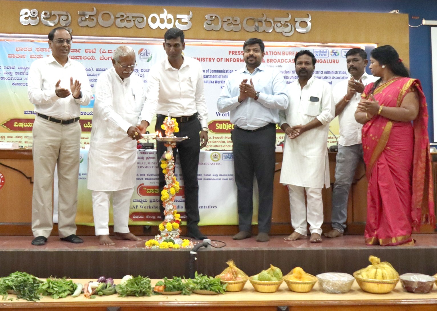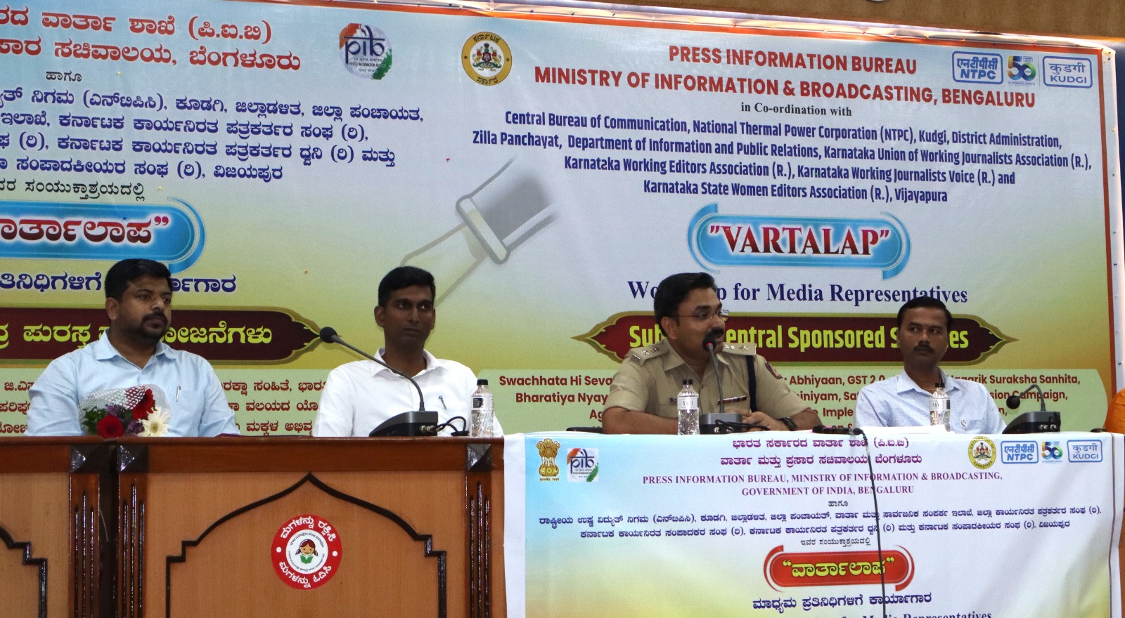 “Vartalap” workshop was organized for media representatives at Vijayapura to create awareness about centrally sponsored schemes, by the joint collaboration of Press Information Bureau (PIB), Bengaluru, National Thermal Power Corporation (NTPC) Kudgi, District Administration of Vijayapura, Zilla Panchayat of Vijayapura, Department of Information and Public Relations, District Working Journalists’ Association (Regd.), Karnataka Working Editors’ Association (Regd.), Karnataka Working Journalists’ Voice (Regd.), Karnataka State Women Editors’ Association (Regd.).