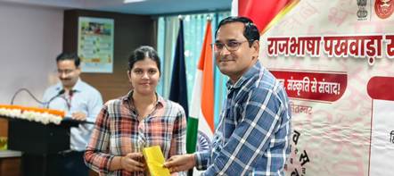 On the occasion, young poet and lyricist Shri Anil Kumar presented a patriotic song, which was well received by the audience. As part of the Hindi Pakhwada celebrations, competitions on essay writing, note-taking, official language knowledge, and speech were organised. Successful participants were felicitated with mementos and certificates. In addition, a book exhibition was also held during the Pakhwada.