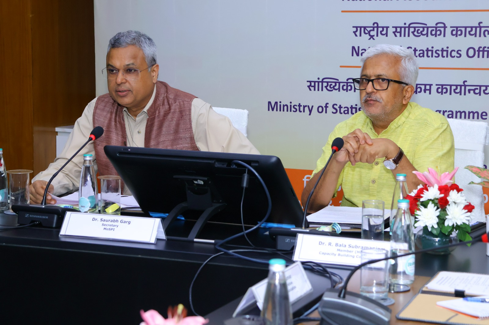 The Technical Advisory Group (TAG) constituted by MoSPI for developing the framework for measurement of knowledge economy had a half day brainstorming workshop. The workshop was organized by MoSPI in Dr. Ambedkar International Centre on 30.09.2025. Representatives from Central Government Ministries, Academia, Research, Industry and Policy think tank participated in the workshop. The workshop was attended by Dr. Saurabh Garg, Secretary, MoSPI; Dr. R. Balasubramanium, Member (Human Resources), Capacity Building Commission & Chairperson, TAG. More than 70 participants attended the workshop.