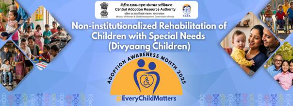 The Central Adoption Resource Authority (CARA), Ministry of Women and Child Development, Government of India, will be celebrating a month long adoption awareness month in November 2025 as observed in the past annually. This year, awareness activities for the Adoption awareness month with the theme of “Non-Institutionalized Rehabilitation of Children with Special Needs (Divyaang Children) have started from today ( 1st October , 2025) with a series of offline and online social media activities building up to the main launch of the National Adoption Awareness Month in November.