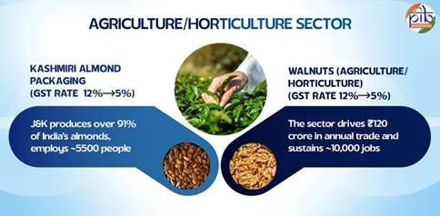 - J&K contributes over 91% of India’s almond output, with its packaging industry benefiting from a GST cut from 12% to 5%.