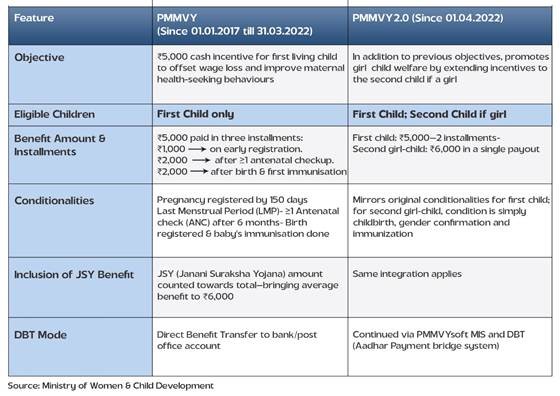 ಮೊದಲ ಮಗುವಿಗೆ ₹5,000, ಎರಡನೇ ಹೆಣ್ಣು ಮಗುವಿಗೆ ₹ 6,000 (ಪಿ. ಎಂ. ಎಂ. ವಿ. ವೈ 2.0).