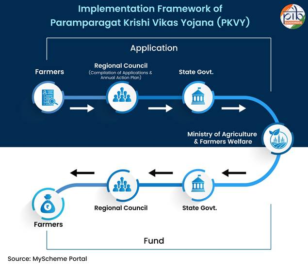 পরম্পরাগত কৃষি বিকাশ যোজনা (পিকেভিওয়াই) একটি নির্দিষ্ট কাঠামোগত প্রণালীর উপর ভিত্তি করে কৃষক-কেন্দ্রিক পন্থায় রূপায়িত হয়ে চলছে। মোট ২ হেক্টর জমি থাকলে যে কোনও কৃষক ও প্রতিষ্ঠান এই প্রকল্পে অন্তর্ভুক্ত হওয়ার জন্য আবেদন করতে পারেন। কৃষকরা এই কাজে নিবন্ধিত হওয়ার জন্য আঞ্চলিক পরিষদের সঙ্গে যোগাযোগ করতে পারেন। সেখান থেকেই পাওয়া যাবে দিশা-নির্দেশ এবং শংসাপত্র। এই পরিষদগুলি সব আবেদনপত্র খতিয়ে দেখে বার্ষিক কর্মপরিকল্পনা তৈরি করে এবং অনুমোদনের জন্য কৃষি ও কৃষক কল্যাণ মন্ত্রকে পাঠিয়ে দেয়।