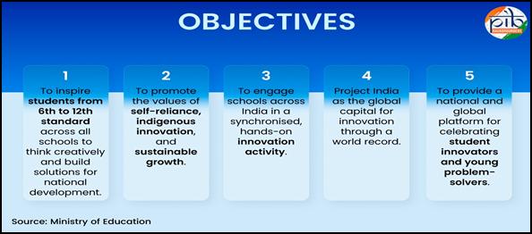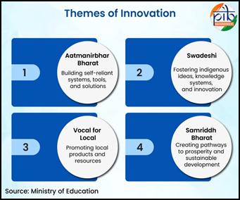 - India's largest school hackathon engaging 1 crore students (classes 6-12) to build prototypes on themes of Swadeshi, Atmanirbhar Bharat, Vocal for Local, and Samriddh Bharat.
