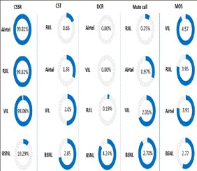 CSSR: Call Setup Success Rate (in %), CST: Call Setup Time (in seconds), DCR: Drop Call Rate (in %) & MOS: Mean Opinion Score.