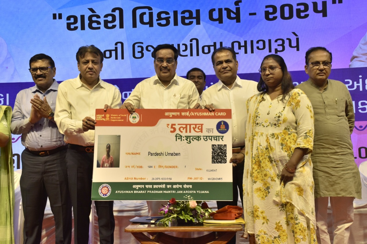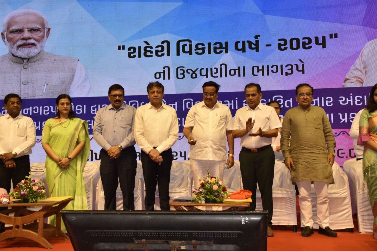 ‘શહેરી વિકાસ વર્ષ-2025’ અને ‘વિકાસ સપ્તાહ-2025’ની ઉજવણી અંતર્ગત સુરત મહાનગરપાલિકાના વિવિધ ઝોન વિસ્તારમાં રૂ.48.81 કરોડના વિકાસકામોનું ખાતમુહૂર્ત અને રૂા.21 કરોડના વિકાસકામોનું લોકાર્પણ કરીને કેન્દ્રીય જળશક્તિ મંત્રીશ્રી સી.આર.પાટીલે સુરતવાસીઓને કુલ રૂ.69.81 કરોડના વિકાસકામોની ભેટ આપી હતી. મંત્રીશ્રી અને મહાનુભાવોએ લાભાર્થીઓને આયુષ્માન ભારત અને આભા કાર્ડનું વિતરણ કર્યું હતું.