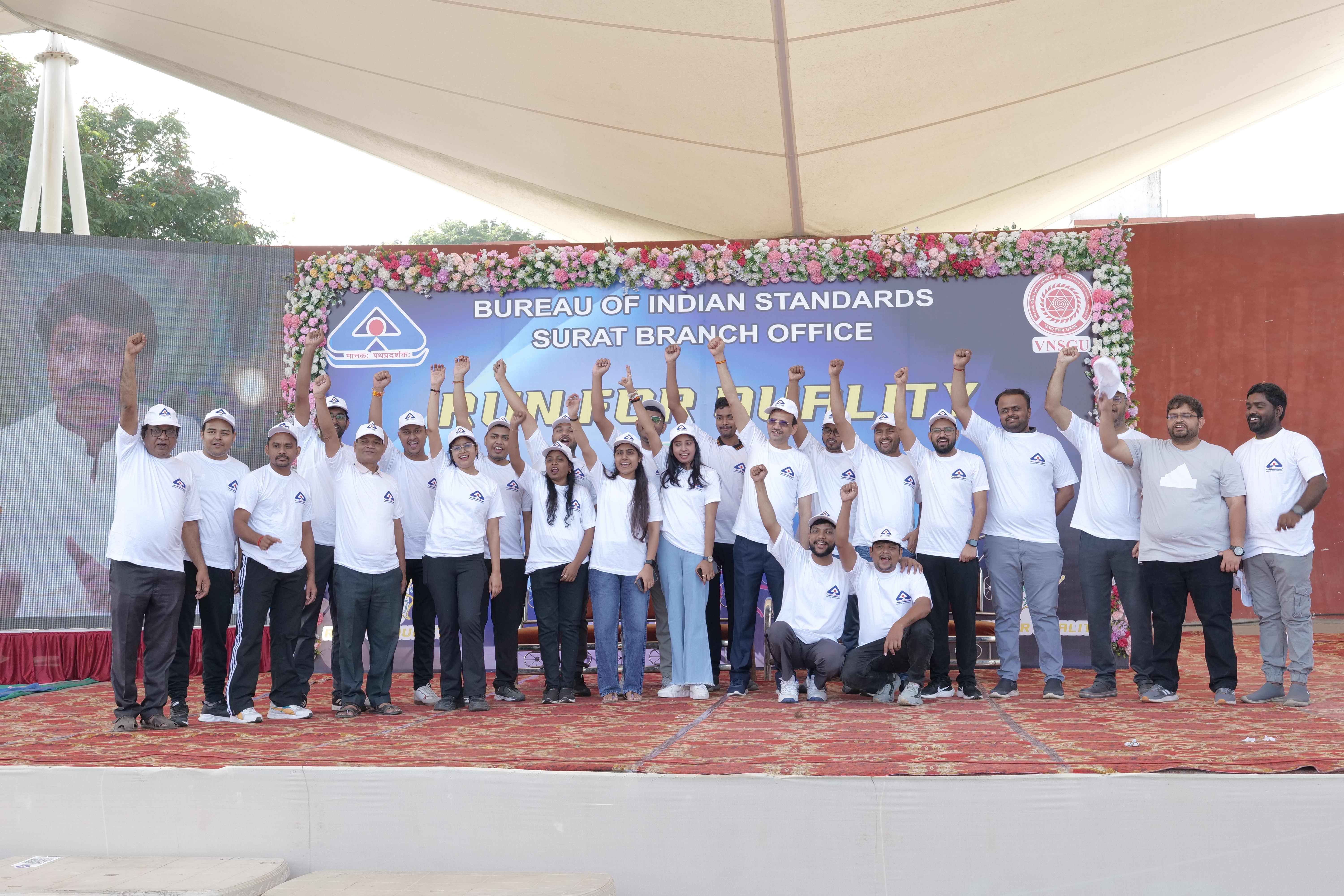 બ્યુરો ઓફ ઇન્ડિયન સ્ટાન્ડર્ડ્સ (BIS), સુરત શાખા કચેરીએ 12 ઓક્ટોબર 2025ના રોજ ગુણવત્તા દોડ ઇવેન્ટનું સફળતાપૂર્વક આયોજન કર્યું હતું, જે દર વર્ષે 14 ઓક્ટોબરના રોજ ઉજવવામાં આવતા આગામી વિશ્વ માનક દિવસની ઉજવણીના ઉત્સાહપૂર્ણ આગમનનું પ્રતીક છે. આ વર્ષની થીમ, "વધુ સારા વિશ્વ માટે સહિયારુ દ્રષ્ટિકોણ- ધ્યેયો માટે ભાગીદારી", વૈશ્વિક સ્તરે ટકાઉ વિકાસ અને ગુણવત્તા ધોરણો પ્રાપ્ત કરવામાં સહકારી પ્રયાસોની અનિવાર્ય ભૂમિકા પર પ્રકાશ પાડે છે.