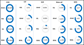 Call Silence/Mute Rate: Airtel, BSNL, RJIL and VIL have silence call rate of 0.83%, 1.39%, 0.84% and 0.54% respectively in packet switched network (4G/5G).