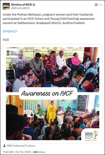 INFANT AND YOUNG CHILD FEEDING ACTIVITY UNDER POSHAN ABHIYAAN IN ANAKAPALLI DISTRICT IN ANDHRA PRADESH