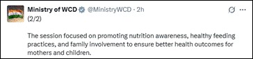 The session focused on promoting nutrition awareness, healthy feeding practices, and family involvement to ensure better health outcomes for mothers and children.