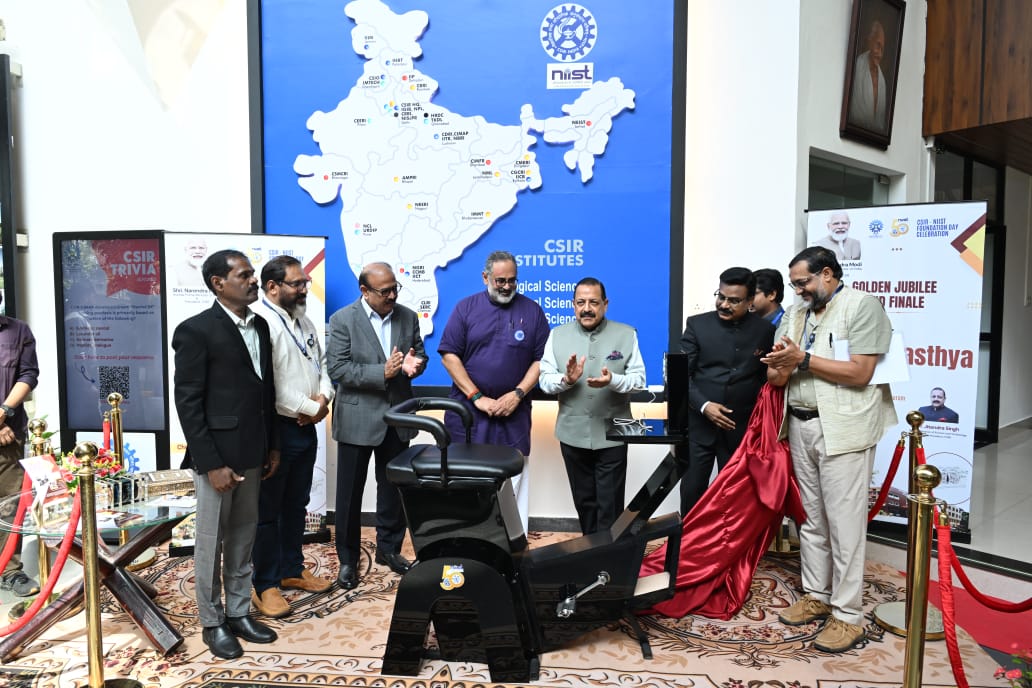 സിഎസ്ഐആർ-എൻഐഐഎസ്ടിയിലെ ശാരീരിക ഊർജ്ജം ഉപയോഗിച്ച് വൈദ്യുതി ഉല്പാദിപ്പിക്കുന്ന പെഡൽ-അസിസ്റ്റഡ് വ്യായാമ സംവിധാനം 'വിദ്യുത് സ്വാസ്ഥ്യ' കേന്ദ്ര സഹമന്ത്രി ഉദ്ഘാടനം ചെയ്തു. ക്യാംപസിൽ നിർമ്മിച്ച സുവർണ ജൂബിലി നൂതനാശയ കേന്ദ്രത്തിന്റെ ഉദ്ഘാടനവും അദ്ദേഹം നിർവ്വഹിച്ചു. നൂതനാശയത്തിൽ അധിഷ്ഠിതമായ സംരംഭകത്വം പ്രോത്സാഹിപ്പിക്കുന്നതിനും വ്യവസായങ്ങളുമായുള്ള പങ്കാളിത്തം ശക്തിപ്പെടുത്തുന്നതിനും ലക്ഷ്യമിട്ടുള്ളതാണ് നൂതനാശയ കേന്ദ്രം.