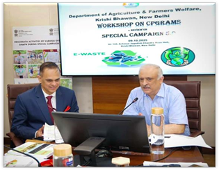 The Department of Agriculture & Farmers Welfare organised a Workshop on CPGRAMS and Special Campaign 5.0 at Krishi Bhawan, New Delhi, graced by Dr. Devesh Chaturvedi, Secretary (DA&FW), and Shri V. Srinivas, Secretary (DARPG). The workshop focused on NextGen CPGRAMS and Special Campaign 5.0, and showcased innovative e-waste models along with the Krishi Rakshak Portal prototype.