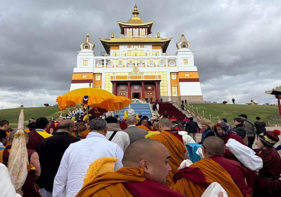 In a powerful display of spiritual devotion and shared cultural heritage, the exposition of Sacred Relics of Lord Buddha from India has drawn an unprecedented response in the Republic of Kalmykia, Russia. As of today, over ninety thousand devotees have paid their reverent homage to the relics, enshrined at the iconic Geden Sheddup Choikorling Monastery, popularly known as the "Golden Abode of Shakyamuni Buddha."