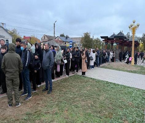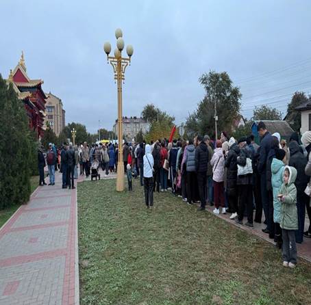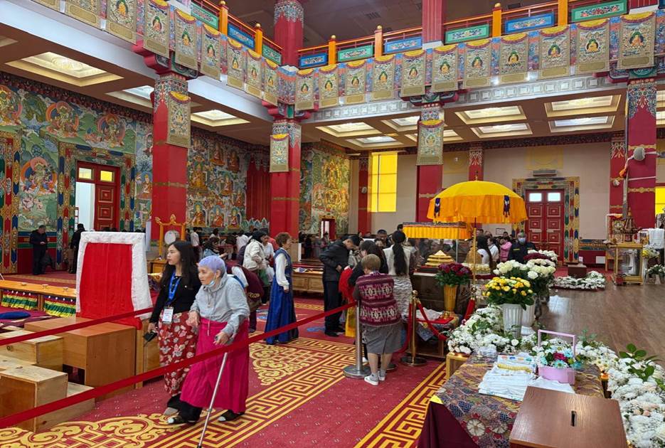 The spiritual fervour has been palpable since the exposition began on October 11th. Today, a queue of devotees stretched nearly one kilometer from the monastery, highlighting the profound resonance of this event. The Golden Abode, a significant Tibetan Buddhist center opened in 1996 and situated in the vast Kalmyk steppe, has witnessed a continuous inflow of pilgrims since early morning.