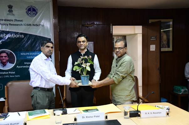 Dr Kishore Patel from the CCRAS-Central Ayurveda Research Institute (CARI), New Delhi delivered an insightful NIScPR SVASTIK lecture on the foundational principles of Ayurveda. He discussed the causes of diseases linked to lifestyle and stress, and underscored the importance of balanced nutrition, mindful eating, and ethical living through the concepts of Āchāra Rasāyana and Sadvṛtta for achieving holistic well-being.