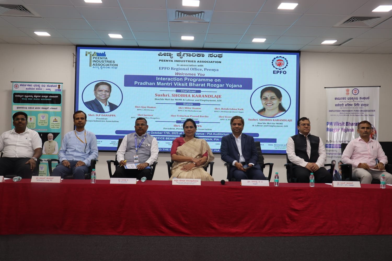 The Employees Provident Fund Organisation (EPFO), Regional Office Peenya, under the Ministry of Labour and Employment in collaboration with the Peenya Industries Association, successfully organized an Awareness and Interactive Session on the Pradhan Mantri Viksit Bharat Rozgar Yojana (PMVBRY).