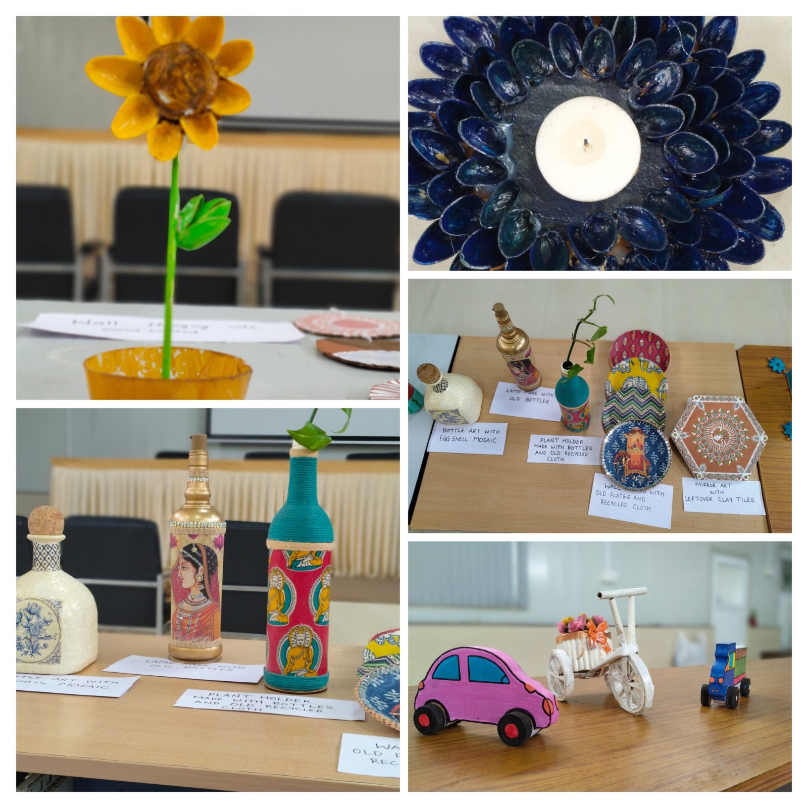 Various exhibits were displayed, showcasing innovative crafts made from discarded bottles, tires, paper, fabric, and other recyclable items. The event reflected the collective commitment of FCI staff toward sustainability and the principles of reuse and recycling.