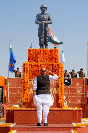 At Laungewala, Raksha Mantri laid a wreath at the iconic Laungewala Yudh Sthal and paid homage to the bravehearts of the Indian Army.
