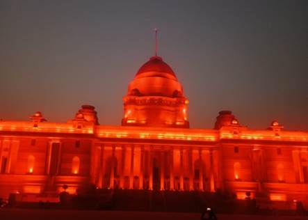 Rashtrapati Bhawan and Secretariat in New Delhi lit up in Red, as thousands walk across India to spread awareness on Dyslexia
