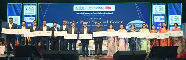 South Eastern Coalfields Limited (SECL), a subsidiary of Coal India Limited (CIL), released an India Post “Special Cover” marking Coal India’s Golden Jubilee and SECL’s Ruby Jubilee (40 years) of dedicated contribution to the nation’s energy sector. A Special Cancellation Cachet was also unveiled on the occasion.