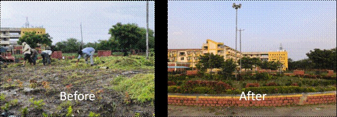 - The overgrown and weed-covered garden area of MANIT, Bhopal was thoroughly cleaned, levelled, and beautified with new plants and landscaping.