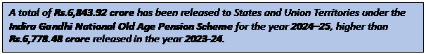 In accordance with the guidelines of the National Social Assistance Programme, States and Union Territories are encouraged to supplement the Central share by contributing an equivalent or higher top-up amount. This additional support helps ensure that the beneficiaries receive a reasonable and dignified level of income. Currently, the top-up provided by States and UTs under the old age pension component ranges from Rs.50 to Rs. 5700 per month, leading to an average pension of around Rs.1100 in many of the States/UTs.