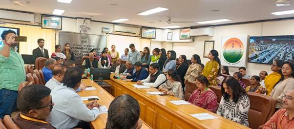 The occasion marked the formal commencement of the Vande Mataram Commemorative Year 2025–26, celebrating 150 years of the national song “Vande Mataram”. The Vande Mataram was sung by the senior officers and staff of the Legislative Department including attached offices i.e. Official Language Wing (OLW) and Vidhi Sahitya Prakashan (VSP) who participated in the event with great enthusiasm and patriotic fervour.