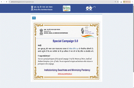 - “Special Campaign 5.0” stands as a testament to the unwavering commitment of the Ministry of MSME towards fostering a cleaner, more efficient, and sustainable working environment. The Ministry remains dedicated to consolidating these achievements and institutionalizing best practices to ensure that the MSME sector continues to play a pivotal role in driving inclusive economic growth, productivity, and sustainable development across the nation.