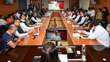 The event marked the online telecast of the inaugural ceremony led by Prime Minister Narendra Modi at the Indira Gandhi Indoor Stadium in New Delhi, where Prime Minister Shri Narendra Modi inaugurated the nationwide celebrations and called upon citizens to uphold the values of patriotism, unity, and selfless service that ‘Vande Mataram’ represents.