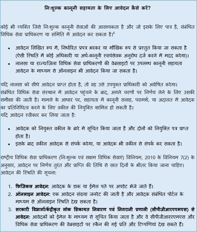 विधिक सेवा प्राधिकरण अधिनियम, 1987 ने यह सुनिश्चित करने के लिए देश भर में विधिक सहायता संगठनों की स्थापना की कि आर्थिक या अन्य बाधाओं से जूझ रहे किसी भी नागरिक को न्याय पाने के समान अवसर से वंचित न किया जाए।