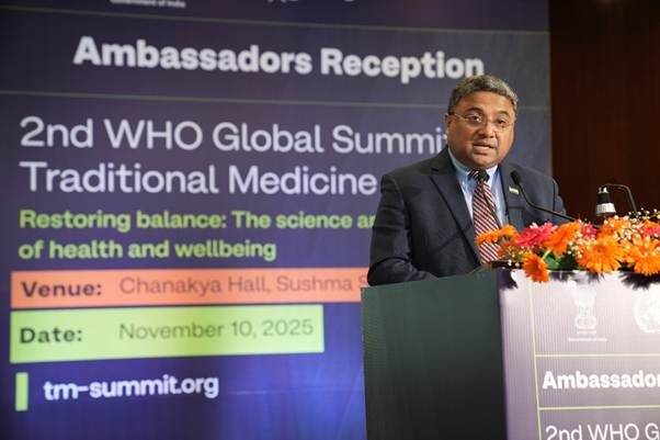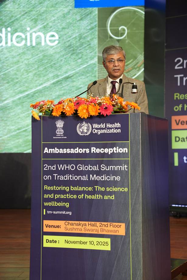 The Ministry of Ayush, Government of India, in partnership with the World Health Organization (WHO), today hosted an Ambassadors’ Reception in New Delhi as a precursor to the 2nd WHO Global Summit on Traditional Medicine scheduled for 17–19 December 2025 in New Delhi. The high-level gathering briefed ambassadors, high commissioners, and diplomatic representatives on the summit vision, global health relevance, and opportunities for multilateral cooperation in advancing evidence-based traditional medicine.