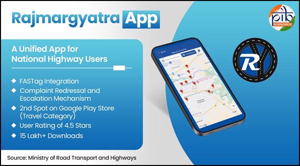 - The Rajmargyatra app, with 15 lakh+ downloads is India’s top highway travel app enhancing the overall experience of commuters.