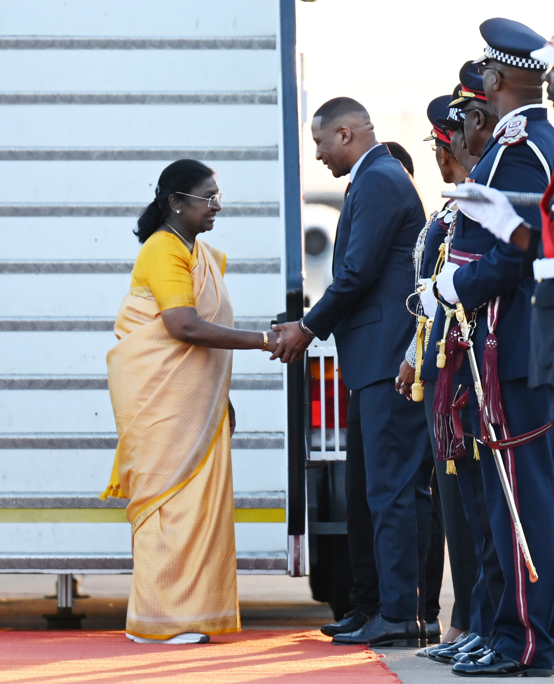 In a special gesture reflecting the depth of India-Botswana friendship, she was warmly received upon arrival at the airport by H.E. Advocate Duma Gideon Boko, the President of Botswana, and accorded a ceremonial welcome and guard of honour.