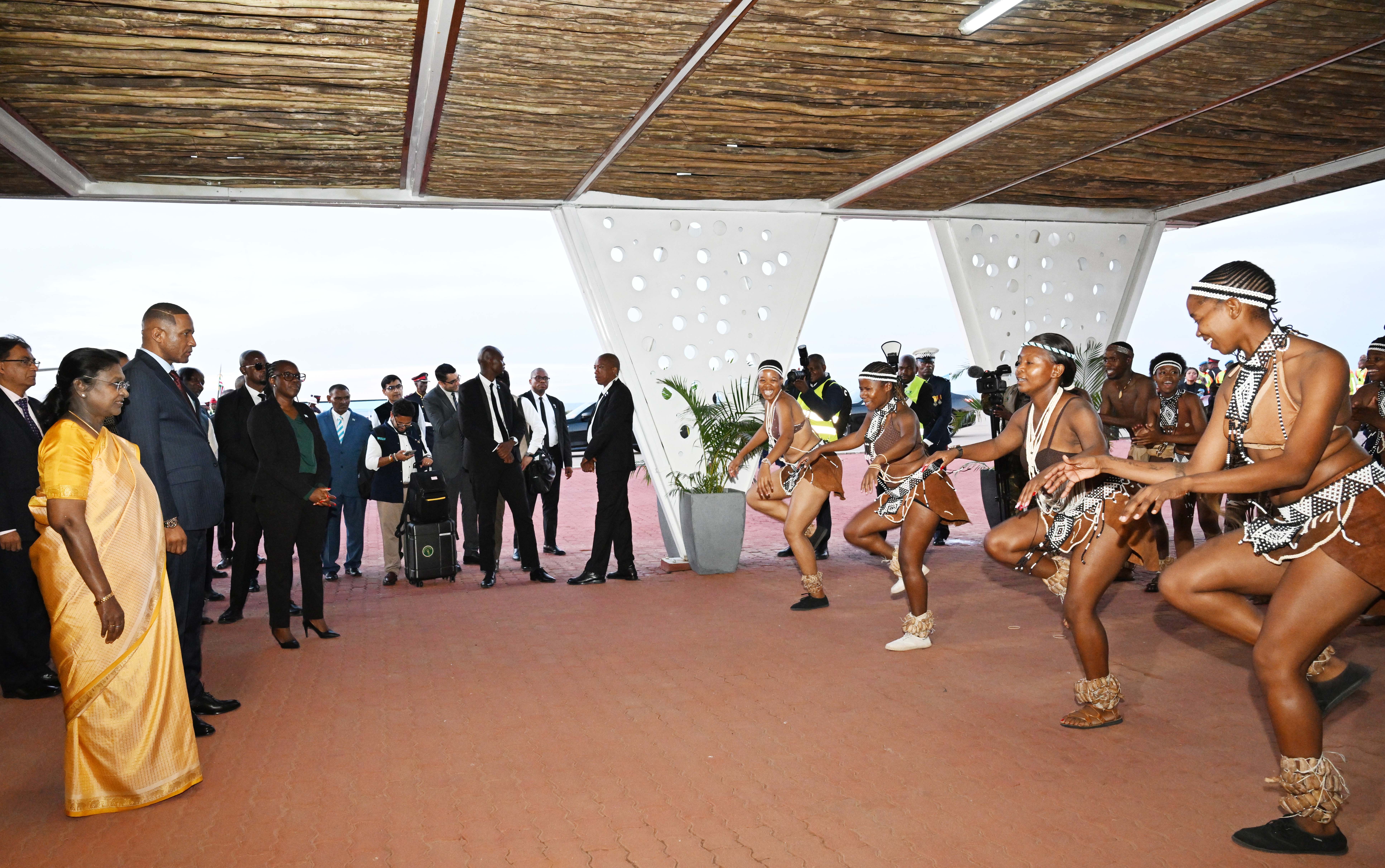 આફ્રિકાના બે દેશોના પ્રવાસના અંતિમ તબક્કામાં, રાષ્ટ્રપતિ શ્રીમતી દ્રૌપદી મુર્મુ બોત્સવાનાના ગેબોરોનમાં સર સેરેત્સે ખામા આંતરરાષ્ટ્રીય વિમાનમથક પર ઉતર્યા હતા. આ કોઈપણ ભારતીય રાષ્ટ્રપતિની બોત્સવાનાની આ પહેલી રાજકીય યાત્રા છે.